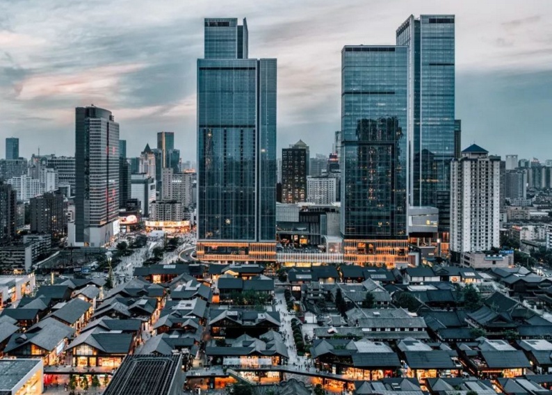 文殊坊以典型的川西民居建筑为纽带,以九街十庙的规模和“街、院、巷”的建筑空间格局,构成了400亩的川西建筑风情群落。青瓦白墙、雕花窗棂、飞檐斗拱、勾勒出岁月风霜;脊檩彩绘、园林庭院、红木回廊、彰显出历史的沉淀;而传统商业和传统建筑相互交融的文化,描摹出一幅浓郁的川西传统建筑风情画卷。